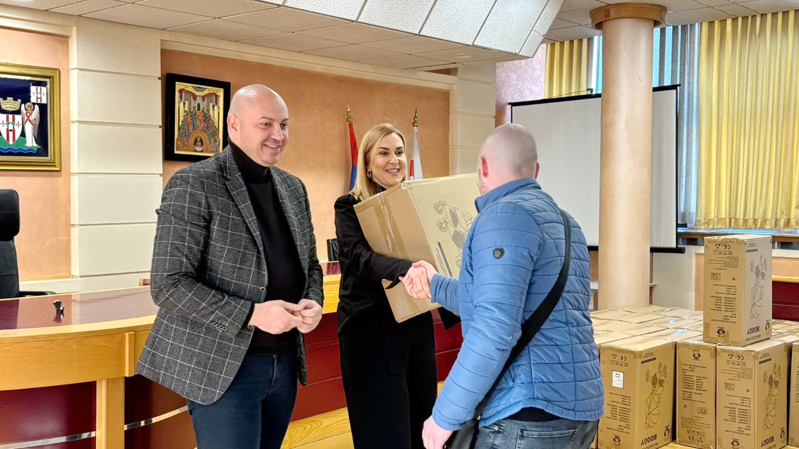 У скупштинској сали Градске општине Лазаревац уручена су поклон колица за 41 бебу рођену у децембру 2025. године. Поклоне су родитељима уручили председник ГО Лазаревац Томислав Рикановић и његов заменик Анђела Пејовић.